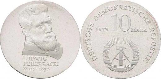 10 Marka 1979 - Ludwig Feuerbach, KM.73 (Ag500, 17.00g, 4.500 ks), patina, kartička RR!