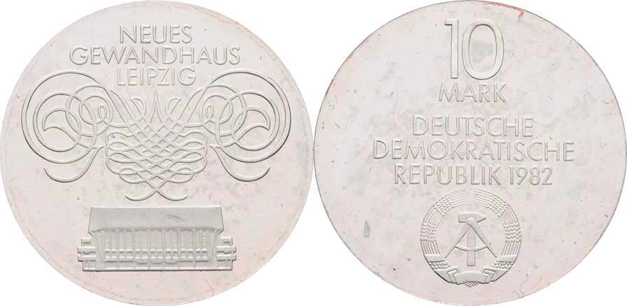 10 Marka 1982 - Neues Gewandhaus Leipzig, KM.87 (Ag500, 17.00g, 5.500 ks), skvr., pat., kartička RR!
