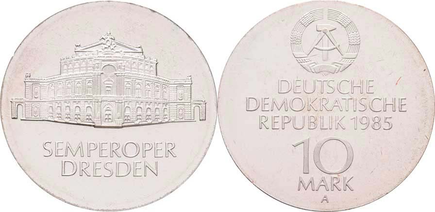 10 Marka 1985 A - Drážďany - Semperova opera, KM.101 (Ag500, 17.0g, 5.000 ks), patina, kartička RR!