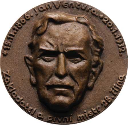 Praha 1932 - lóže 28.října - Jan Ventura - zakladatel a první mistr - úmrtní medaile, Nesign., jednostranný litý bronz 60mm, 113.342g, pěkná patina R!