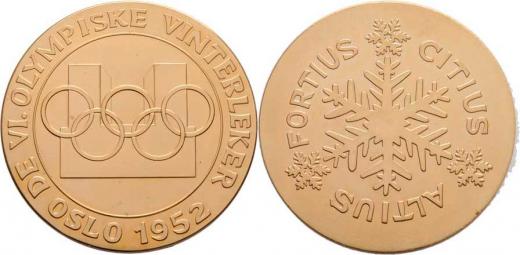 Oslo 1952 (pozdější ražba) - VI.zimní olympijské hry, Nesign., zlacený bronz 50 mm