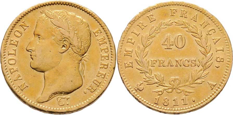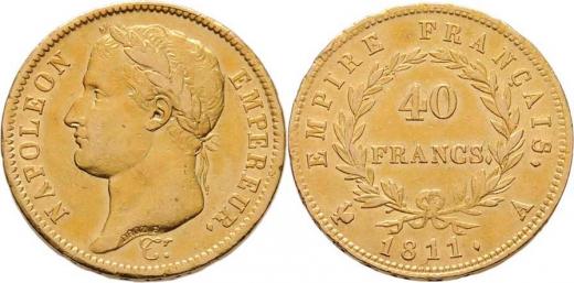 40 Frank 1811 A, Paříž, KM.696.1 (Au900), 12.859g, dr.hr., nep.rysky