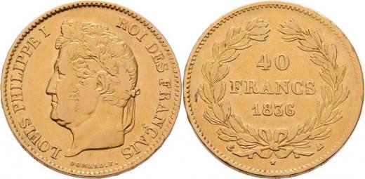40 Frank 1836 A, Paříž, KM.747.1 (Au900, pouze 53.000 ks), 12.834g, nep.hr., nep.rysky,, pěkná patina R!