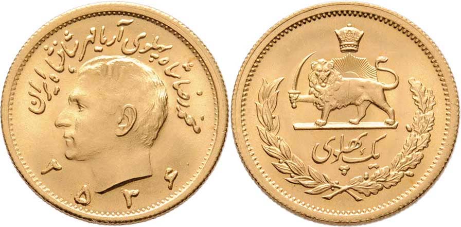 Pahlavi, MS.2536 = 1977, KM.1200 (Au900), 8.132g