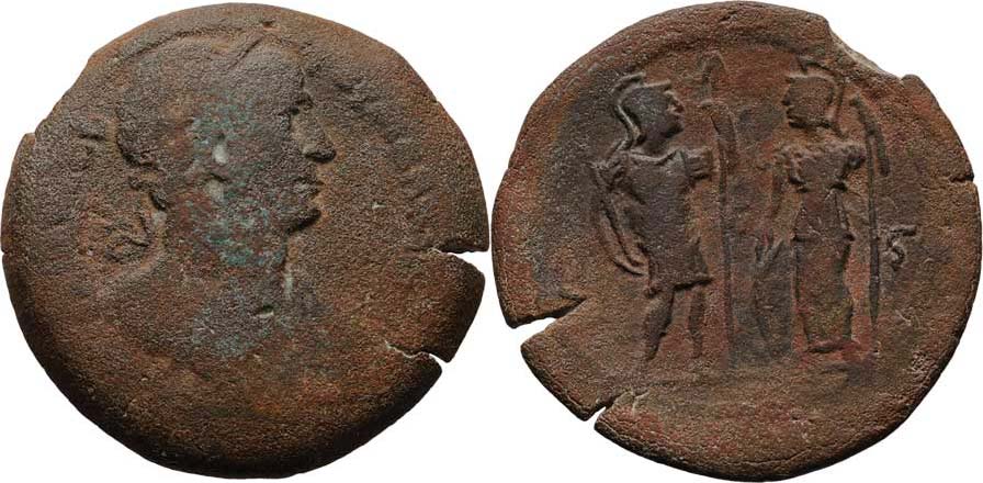 AE Drachma, 34mm, rok 16 (= 112/113), stojící Ares a Aténa, jako SGI.1096, K-G.27/451, Dat.806, 16.128g, vada materiálu na hraně, mírně kor., patina R!
