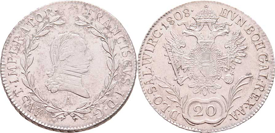 20 Krejcar 1808 A, Vídeň, 6.658g, mírně just. R!