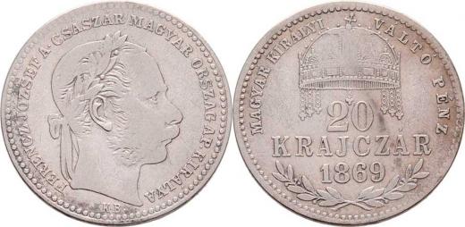 20 Krejcar 1869 KB - dlouhý opis, 2.644g, nep.hr., nep.rysky, pěkná patina R!
