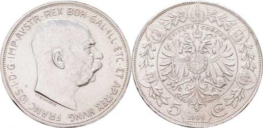 5 Koruna 1909 - Schwartz, 24.019g, dr.hr., nep.rysky v aversu R!