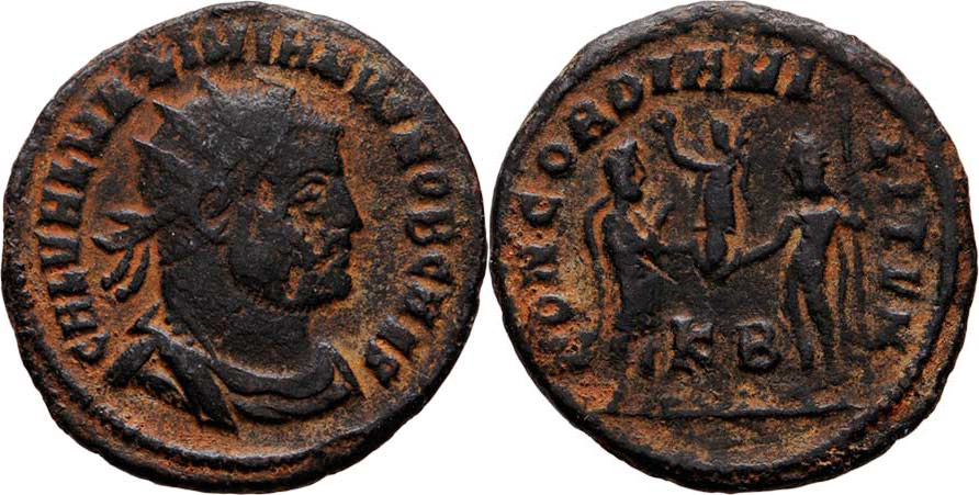 AE Radiatus, Rv:"CONCORDIA.MILITVM.", RIC.6.19b, S.3613 - Cyzicus - 3.dílna - ražen 295 - 299, patina