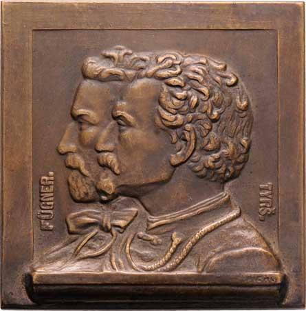 Fügner a Tyrš - jednostranná plaketa b.l. - dvojportrét zleva, písmo, Sign., pat.bronz 51x54 mm, nep.hr., nep.rysky
