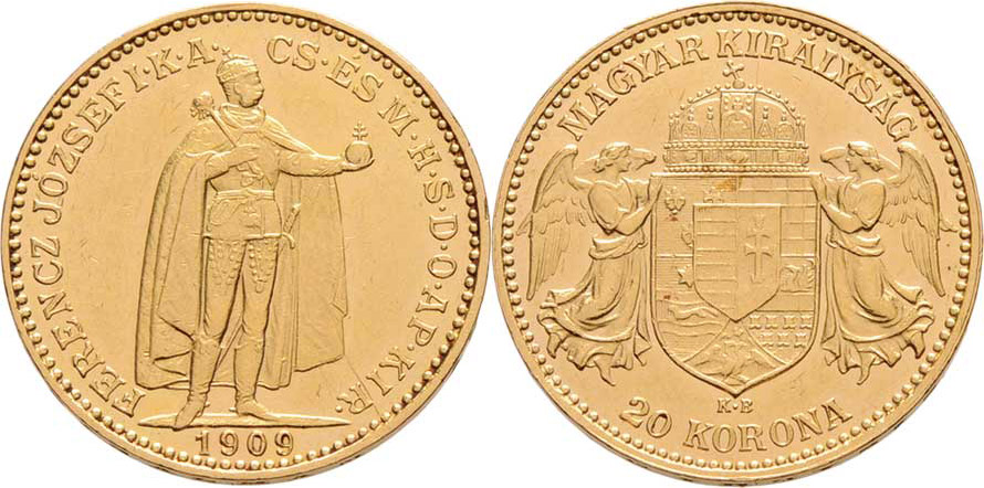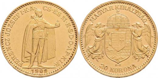 20 Koruna 1909 KB, 6.767g, nep.hr., nep.rysky, téměř