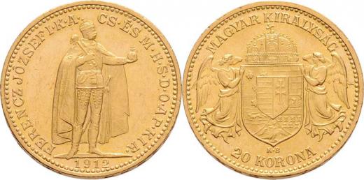 20 Koruna 1912 KB, 6.776g, nep.hr., nep.rysky, téměř