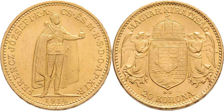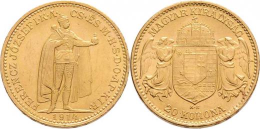 20 Koruna 1914 KB, 6.771g, dr.hr., dr.rysky, téměř