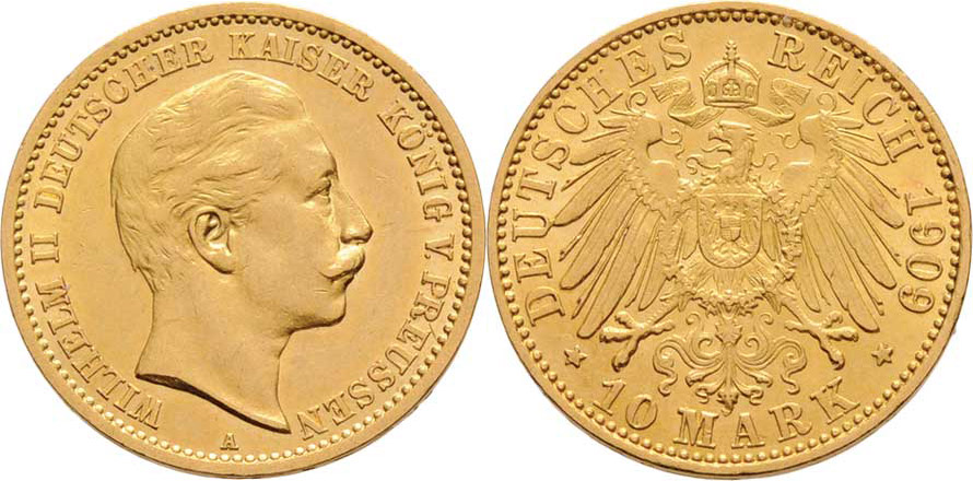 10 Marka 1909 A, KM.520 (Au900), 3.977g, nep.hr., nep.rysky, pěkná patina