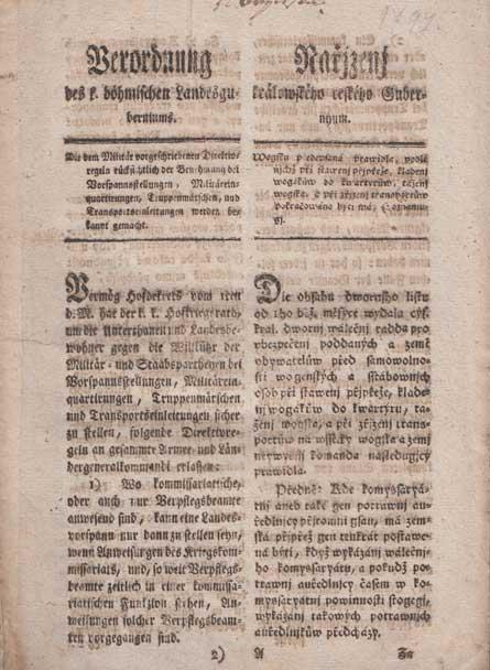 František II., 17.VII.1797 - nařízení o zásobování vojska, vojenských transportech a přidělování vojáků do kvartýrů, F.K. hrabě Schtampach, velmi dobře