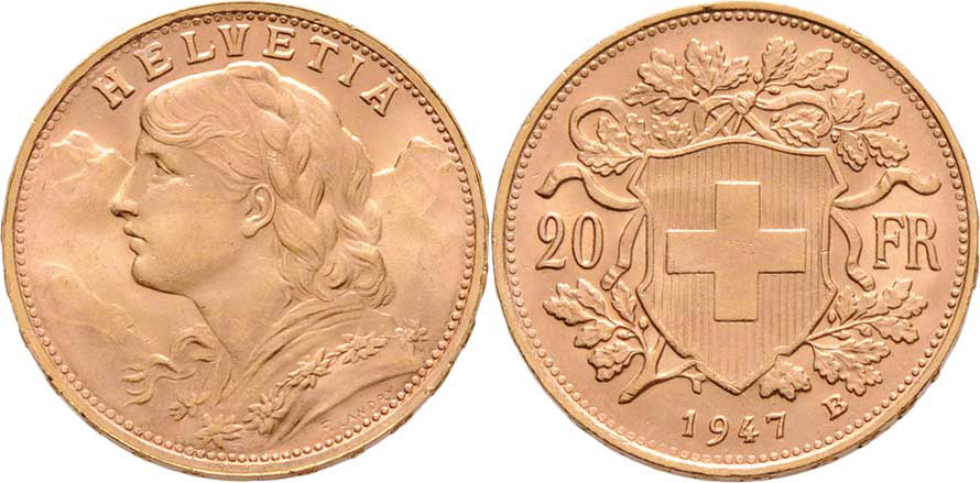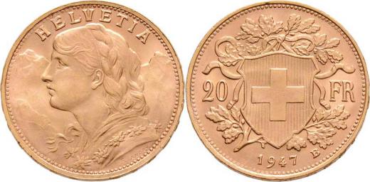 20 Frank 1947 B, Bern, KM.35.2 (Au900), 6.443g, nep.hr., nep.rysky