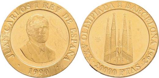 20.000 Peseta 1990 - LOH Barcelona 1992 - La Sagrada Familia, KM.875 (Au999, pouze 10.000 ks), 6.683g, avers poškrábaný, nep.hr., rysky R!