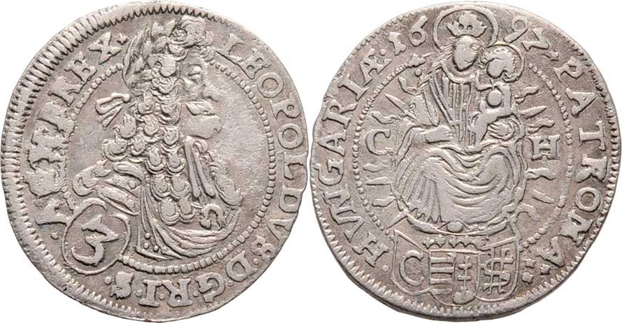 3 Krejcar 1697 CH-CSH, Bratislava-Hunger, Nech.1660, Husz.1478, 1.626g, nep.exc., pěkná patina