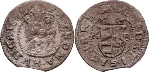 Denár 1685 KB, Nech.1291, Husz.1509, 0.585g, krajový střížek, nep.nedor., patina