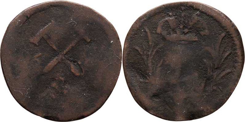 AE důlní známka 1660, Banská Štiavnica, korunované "L", ratolesti / zkřížená kladívka, letopočet, Nech.1705, Neumann.188, 1.016g, nedor., zvlněný R!