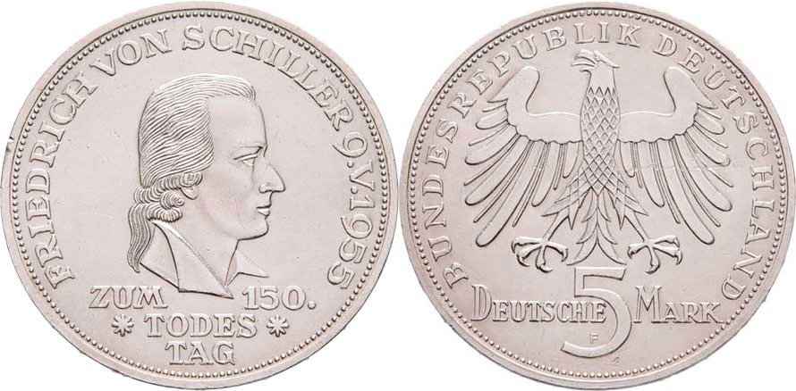 5 Marka 1955 F - Friedrich Schiller, KM.114 (Ag625), 11.064g, dr.hr., dr.rysky RR!