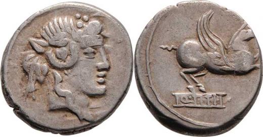 AR Denár, Hlava Libery zprava / Pegas zprava, nápis na tabulce "Q.TITI.", Crawford.341/2, Alb.1181, S.239, nep.exc., pěkná patina
