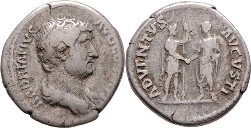 AR Denár, Rv:"ADVENTVS.AVGVSTI.", stoj. Roma a císař, S.neuvádí, RIC.226 - mincovna Řím - ražba z let 134 - 138, nepravidelný okraj, nep.nedor., patina