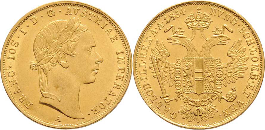 Dukát 1854 A, 3.473g, nep.hr., nep.rysky, pěkná patina