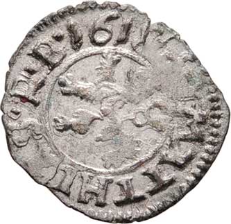 Bílý peníz 1618, K.Hora-Hölzl, J.2e, MKČ.548, 0.315g, nep.nedor., pěkná patina R!