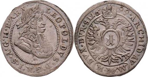 Krejcar 1699, Opolí-Wackerl, MKČ.1676, Nech.827b, 0.834g, nep.nedor., pěkná patina R!