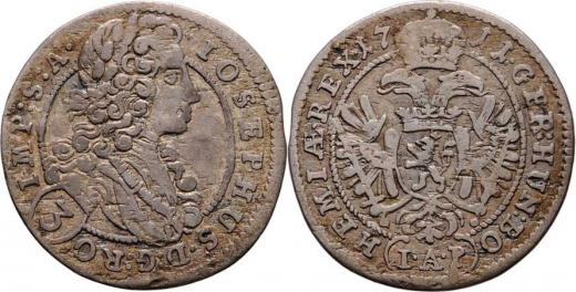 3 Krejcar 1711 I.A.P, Praha-Putz, J.8a, MKČ.1723, s dvojtečkou za "IMP:", 1.545g, nep.nedor., patina R!