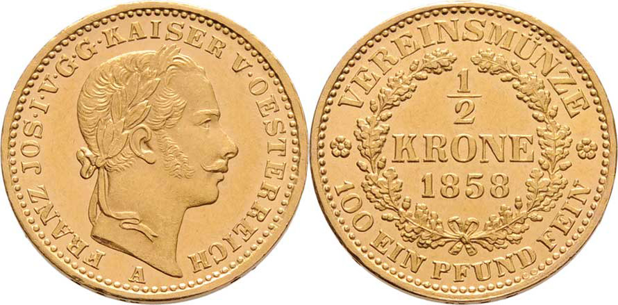 1/2 Koruna spolková 1858 A (pouze 20.000 ks), 5.530g, nep.hr., nep.rysky, pěkná patina RR!