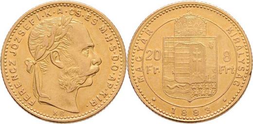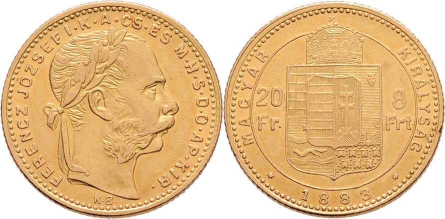 8 Zlatník 1883 KB, 6.439g, dr.hr., nep.rysky, pěkná patina
