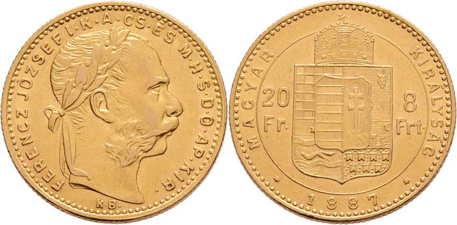 8 Zlatník 1887 KB, 6.442g, nep.hr., nep.rysky, pěkná patina