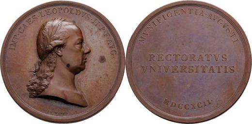 Wirt - Právnická fakulta vídeňské university 1792 - poprsí zprava, latin. opis / 4-řádkový latin. nápis, Sign., měď 50mm, 59.531g, jako M.2254, skvrnky, pat.