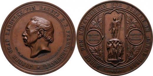 Seidan - AE medaile na odhalení pomníku v Praze 1858 - hlava zleva, opisy/ socha maršála, písmo a vavříny, Sign., 80mm, 189.421g, Don.3696, dr.hr., dr.rysky
