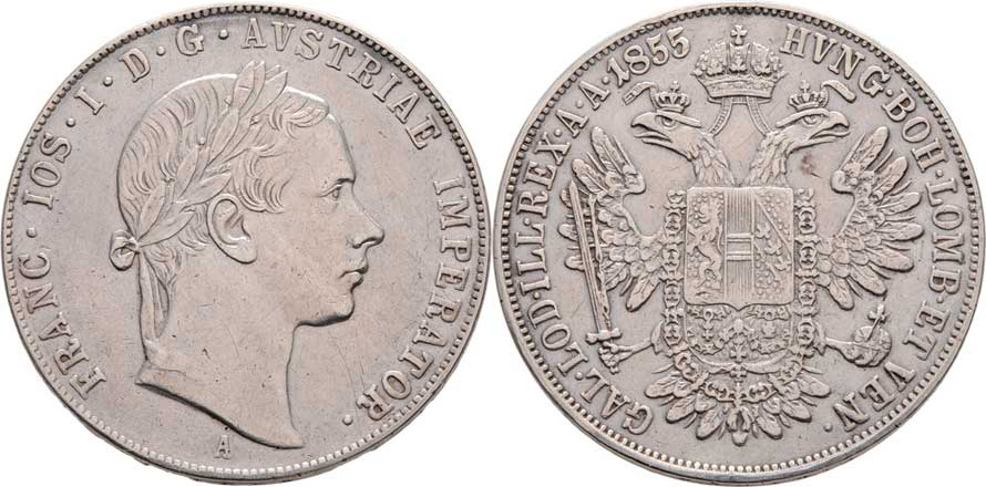 1/2 Tolar 1855 A, 12.852g, dr.hr., dr.rysky, pat. R!