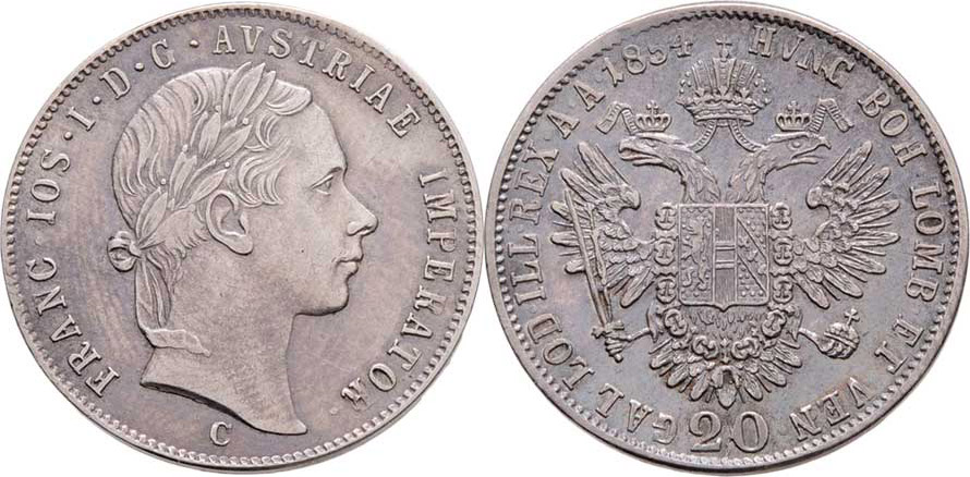 20 Krejcar 1854 C, 4.299g, nep.hr., nep.rysky, pěkná patina