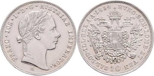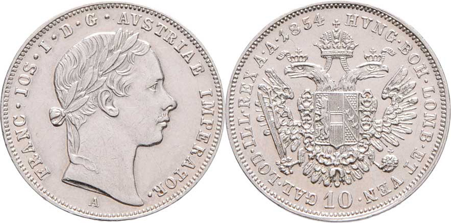 10 Krejcar 1854 A, 2.155g, nep.hr., nep.rysky R!
