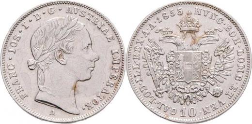 10 Krejcar 1855 A, 2.154g, nep.hr., nep.rysky R!