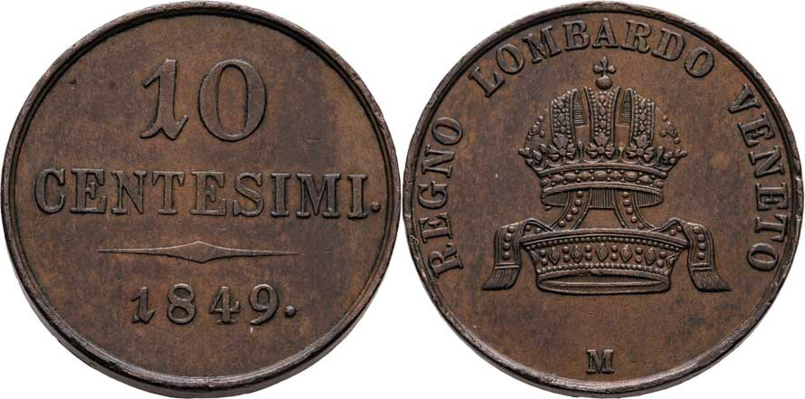 10 Centesimi 1849 M - větší typ, 17.437g, dr.hr., nep.rysky, krásná patina RR!