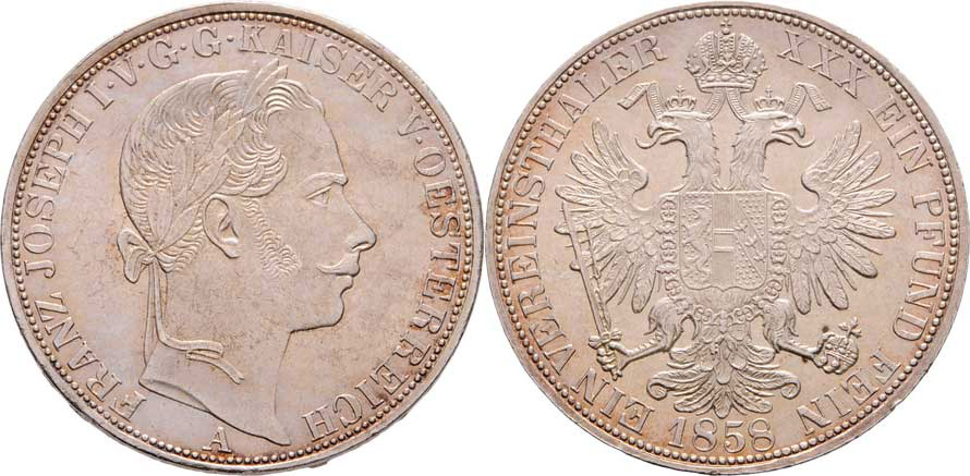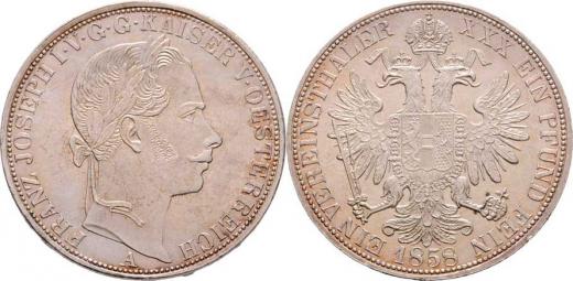 Tolar spolkový 1858 A, 18.537g, nep.hr., nep.rysky, pěkná patina