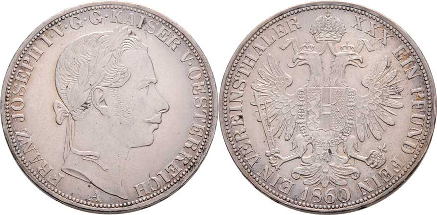 Tolar spolkový 1860 A, 18.528g, dr.hr., dr.rysky, pěkná patina