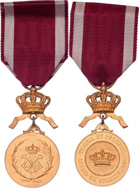 Řád belgické koruny - typ 1951 - zlatá medaile (dvojjazyčná), BB.212, zlacený bronz, původní stuha