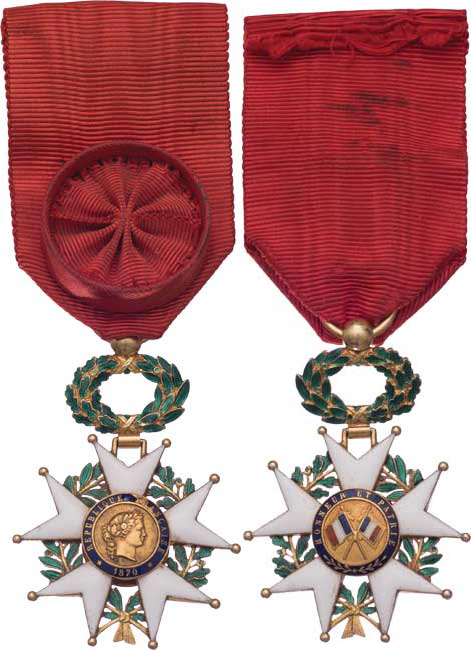 Řád Čestné legie - typ 1870 - IV.stupeň - důstojník, VFR.I.H.4, BB.582, puncované Au900, nep.poškozený smalt, původní vybledlá stuha s rozetou R!