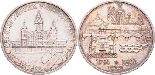 Všeobecná československá výstava v Praze 1991 - Průmyslový palác, emblém, opis / pražské stavby, vročení, Sign., Punc., Ag900, 40mm, 33.482g, certif.