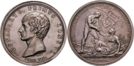 Lavy - založení Cisalpinské republiky An.8 (1800) - poprsí zleva, opis / Herkules pozvedá Itálii, písmo, Sign., Ag 53mm, 73.261g, Julius.802, rys., patina RR!
