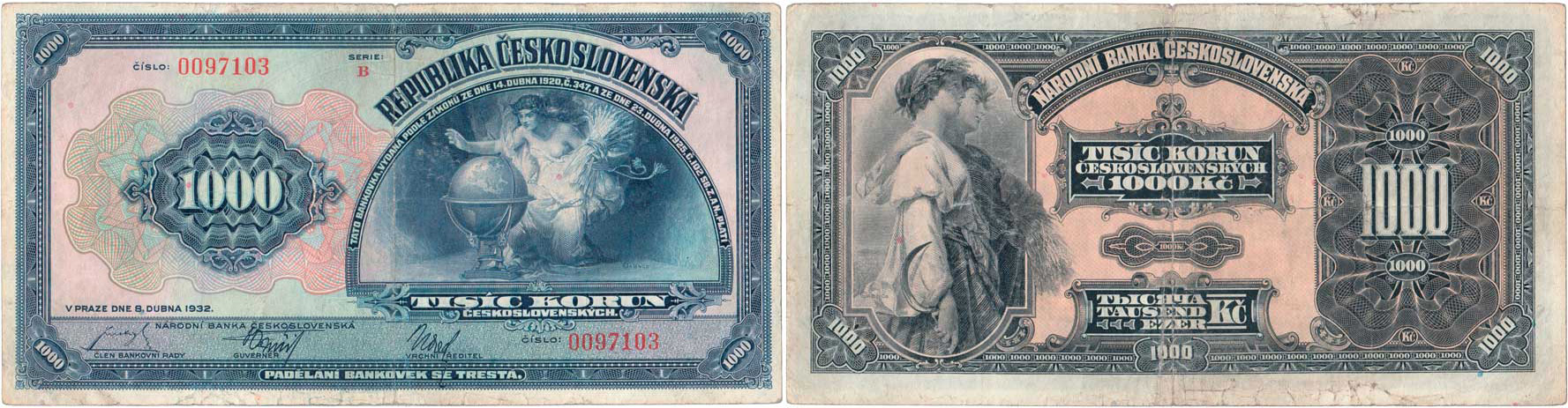 1000 Koruna 1932, série B, BHK.26, He.26a "neperf."