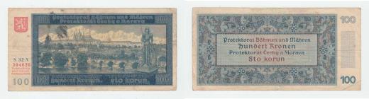 100 Koruna 1940 - 1.vyd., série 32A, BHK.32 , He.34a, "neperf.", skvrna
