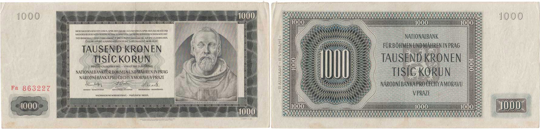 1000 Koruna 1942 - 2.vyd.- série Fa, BHK.39a, He.41a, "neperf."